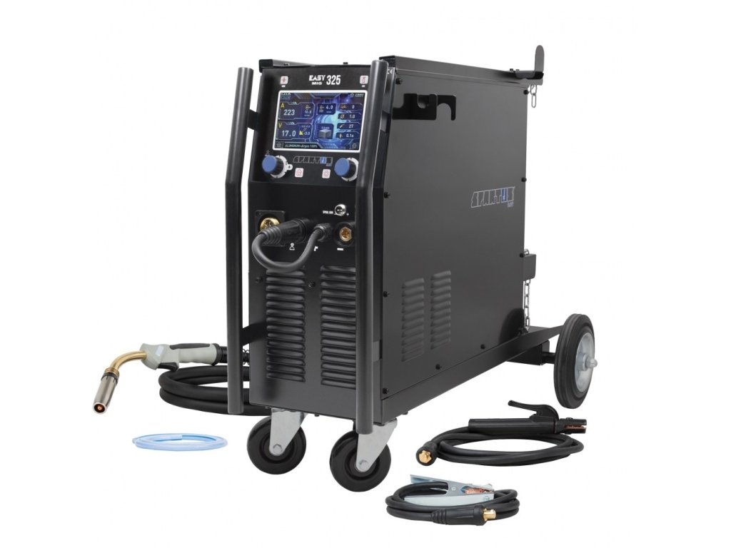 Objavte Zváračku SPARTUS® EasyMIG 325 – profesionálny, synergický invertorový stroj MIG/MAG a MMA, navrhnutý pre výnimočný výkon. S napájaním 400 V a maximálnym zváracím prúdom 300 A pre MIG/MAG (250 A pre MMA) a vysokým 60 % pracovným cyklom, zaručuje stabilné parametre pre dlhodobé a náročné úlohy.